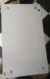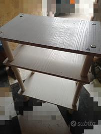 Tavolino carrello a tre piani con venature legno, ha qualche scritta vicino, buone condizioni anche le ruote.