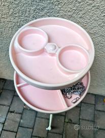Tavolino carrello di servizio con rotelle e divisori sui ripiani ( lazy susan? ) colore rossa e bianco tipico del periodo, tavolino molto pratico grazie alla divisione sui piani che permettono un'organizzazione ottimale e funzionale tavolino in patina tenuto molto bene con piccoli segni del tempo misure del carrello