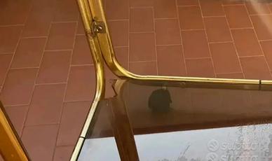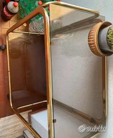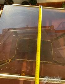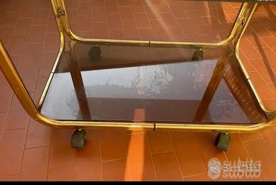 Tavolino carrello con rotelle dorato in vetro fumè vintage Angolino spezzato non crepato, ma comunque sempre bello. Vedi foto