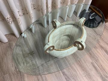 Bellissimo tavolino in cristallo con la base in ceramica Paolo Marioni