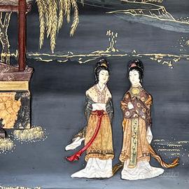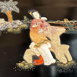 Sono raffigurate figure femminili (dame di corte o geishe), animali e motivi floreali.