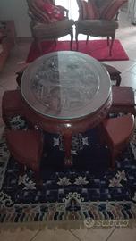 Tavolino cinese con 6 sgabelli da sala . Tenuto molto bene come da foto . Ripiano in cristallo.Vendo per trasloco. Solo per realmente interessati . Ritiro comodo al piano.