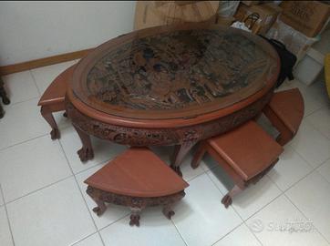 tavolino cinese intarsiato a mano con 6 sgabelli anni 50 si valutano proposte ritiro zona Ardea RM