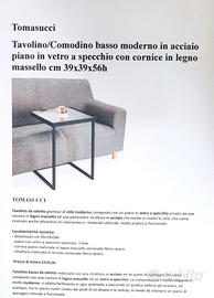 Tavolino/Comodino di Tomasucci, in metallo e legno neri e vetro a specchio. Misure e descrizione dettagliata nella quarta foto allegata.