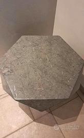 Tavolino Salotto Moderno in Compensato Marino Ricoperto da Tasselli di Pietra Fossile White Agata, Modello Diamond Small, Colore Grigio Scuro, 60 x 60 x h 50