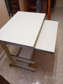 Tavolino da computer con ripiano estraibile per la tastiera completo di presa multipla cablata.