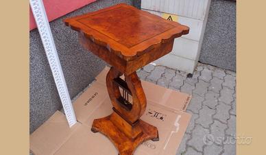 tavolino con cassetto e piede a lira filettato e inradica di pioppo restaurato a gommalacca epoca primi 900 tavolino a lira con cassetto in radica di piopp