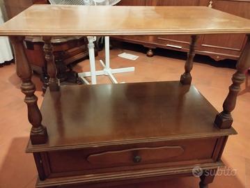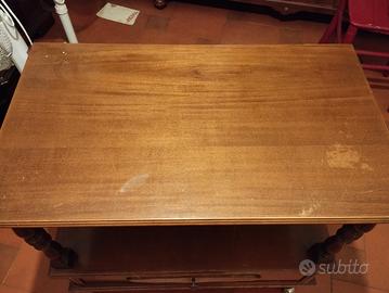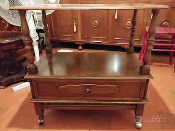 Mobiletto/ carrello in legno con cassetto e ruote girevoli. Vero legno massello stile rustico.Solo ritiro a mano.
