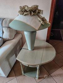 Tavolino allungabile + lampada abbinata. Qualche graffio. Larg. 44 (con ali laterali aperte 88) Prof. 70 Alt. 58