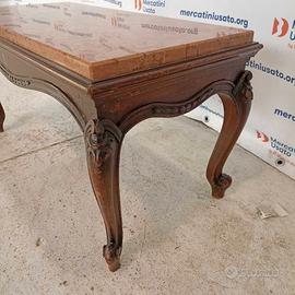 Tavolino con marmo in stile met 900. Struttura in legno intagliato con piano in