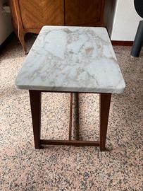 Tavolino Flexform con base in legno noce canaletto naturale e piano ad appoggio in marmo calacatta oro opaco, spessore 2cm. Il