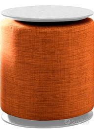 vendo tavolino con pouf integrato bianco laccato e pouf colore marrone chiaro. altezza 45 cm e larghezza 40 cm x 40 cm. come nuovo scambio solo a mano. 70 euro