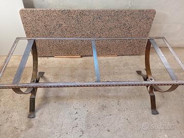 tavolino con ripiano in granito e base in ferro battuto.