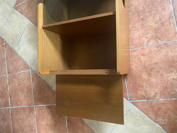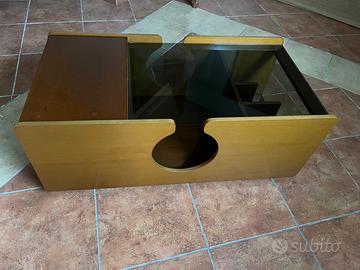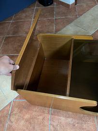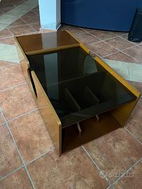 Tavolino con ruote e piano in vetro. Dispone anche di un vano contenitore. Misure 110x55.5x43 No spedizione. Ritiro a mano.