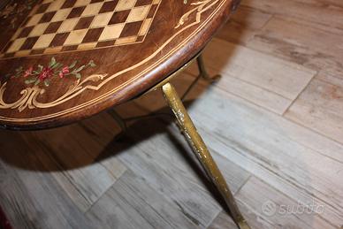 Tavolino con scacchiera vintage scacchi, struttura in metallo dorato chess table. diametro 47 cm x H 44 cm