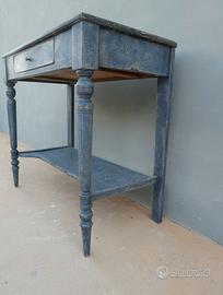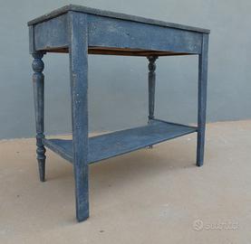 Tavolino mobile console con doppio piano d'appoggio ed un cassettino frontale, laccata bicolore e rifinita con la tecnica "Shabby Chic". Semplice ed essenziale nella linea, si presenta come un versatile ed elegante elemento d'arredo. Epoca primi '900. DIMENSIONI: alt 81 – largh 88 - prof 45,5 cm - spazio (fascia - piano inferiore) 44,5 cm SPEDIZIONE: euro 80,00 + euro 10,00 per le isole. E' NECESSARIO INDICARE PRIMA DELL'ACQUISTO SE LA CONSEGNA E' DA EFFETTUARE IN ZONA ZTL/CENTRO STORICO O IN UN LUOGO DIFFICILMENTE RAGGIUNGIBILE CON UN FURGONE. Vendita al dettaglio e ai COMMERCIANTI del settore. ATTENZIONE: trattandosi di oggetti vecchi/antichi non è esclusa la possibilità, ed è da tenere in considerazione, che possano mancare piccoli pezzettini e/o che siano presenti buchi di tarlo (ciò garantirebbe l'autenticità dell'oggetto). Si può verificare lo stato generale del mobile dalle foto allegate. SPEDIZIONE: i tempi di spedizione sono di circa una settimana/dieci giorni e variano in base al corriere utilizzato e, ovviamente, al luogo di consegna. Il mobile viene spedito solamente dopo aver ricevuto il pagamento totale dell'oggetto. Non è prevista la consegna al piano ma solamente di fronte all'abitazione/negozio. Confermato l'acquisto, sarà obbligatorio lasciare l'indirizzo di spedizione, un numero di telefono per il corriere e il codice fiscale e/o p.iva per la ricevuta fiscale (equivalente allo scontrino) o fattura. E’ possibile e gradito il RITIRO IN SEDE gratuito presso: GASCO ANTICHITA' – via Mondovì, 80 – Beinette (CN) – 12081 (a pochi km da Cuneo, casello autostradale Mondovì, Limone, Borgo San Dalmazzo, Boves) AVVISO IMPORTANTE: LE SPEDIZIONI VERRANNO SOSPESE DURANTE TUTTO IL PERIODO NATALIZIO (epifania compresa) E TUTTO IL MESE DI AGOSTO (salvo per alcune zone, contattare per ulteriori chiarimenti prima di effettuare l'acquisto).