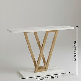 La console è nuova in scatolo originale, mai assemblata per errato acquisto, il piano superiore è 105cm, le foto sono prese dal sito perchè il mobile si trova ancora nello scatolo, le gambe sono in metallo, i piani sono in legno con un rivestimento lucido e liscio a effetto marmo, molto ben fatto e di qualità.
