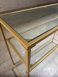 Tavolino / Consolle in metallo dorato e vetro