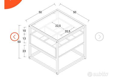 Tavolino contenitore 50x50 cm top in vetro con str