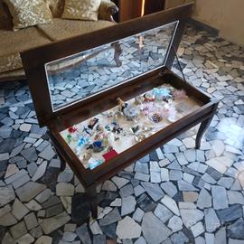Tavolino in legno, con contenitore e vetrina. Misura 1m × 50cm. alto 47cm.
