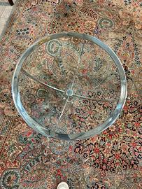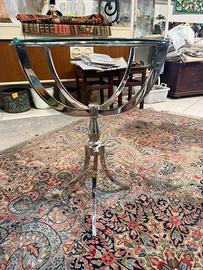 Materiali: Robusta struttura interamente in acciaio cromato lucido e piano circolare in spesso cristallo trasparente.
