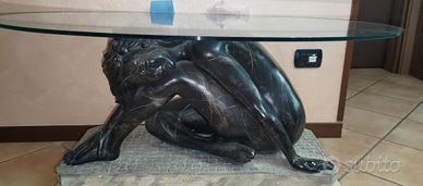 vendo tavolino con statua in pietra raffigurante donna seduta alcuni segni sulla statua dovuto a traslochi fatti in passato vetro ovale in cristallo c'è da fissare il cristallo misure 120x66x87 h