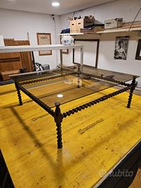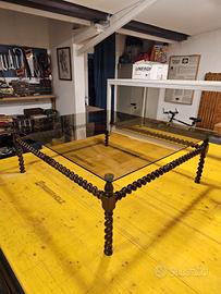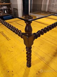 Vendesi Tavolino di cristallo, da salotto, a base a torciglioni in legno, sec XX°. In buone condizioni. Misure: 124×112×43