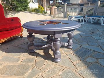 tavolino in legno con ritaglio in vetro diametro 88x88 altezza 48 cm