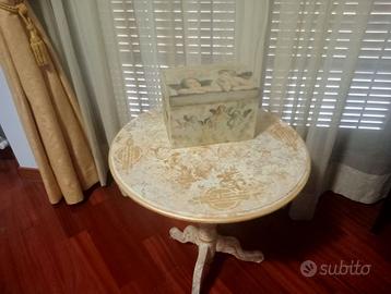 Tavolino d'arredo adatto in qualsiasi ambiente. Davvero molto raffinato ed elegante, dipinto a mano, fondo panna e striature giallo chiaro. Leggermente trattabile