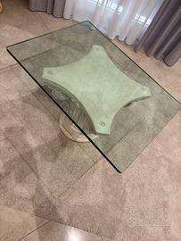 Questo tavolino da arredamento e un tavolino di pietra vera a forma di colonna e con un vetro spesso in cristallo
