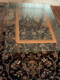 Tavolino da salotto classico. Ripiano rettangolare in cristallo molato dimensioni 45 x 60 cm circa che poggia sulla base, presumibilmente in bronzo lavorato con motivi a foglia. Ottima fattura. RITIRO SUL POSTO