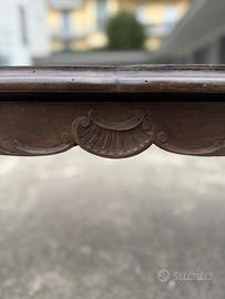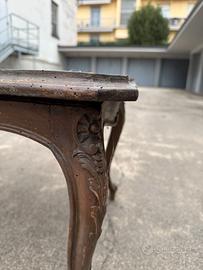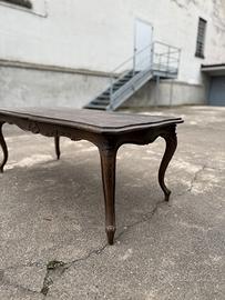 Tavolino da caffè in legno, risalente ai primi del '900. Un elegante pezzo d’epoca che necessita di restauro, ideale per appassionati del recupero di mobili antichi.