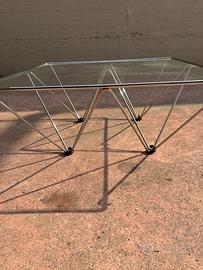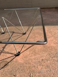 Tavolino da caffè in stile Paolo Piva, ispirato al celebre modello Alanda di B&B Italia, un’icona intramontabile del design italiano. La sua struttura geometrica in metallo, con base a piramidi rovesciate, sostiene un piano in vetro creando un effetto leggero ma di grande impatto visivo, perfetto per ambienti moderni, minimal o industrial. Il tavolino è in condizioni perfette, come da foto. Disponibile per ritiro a mano a Nova Milanese, con possibilità di accordarsi per la consegna. Per ulteriori informazioni o foto non esitare a contattarmi in privato. #design #vintage #modernariato #arredamento #PaoloPiva #Alanda #B&BItalia #tavolinodesign