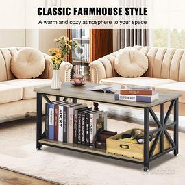 • Venditori Affidabili di Esperienza • Spediamo ovunque, anche in Contrassegno • Vendiamo solo articoli Nuovi di prima qualità • Contattaci per qualsiasi info necessaria Design spazioso: il tavolino in stile country non solo aumenta notevolmente lo spazio di archiviazione, ma funge anche da postazione di lavoro quotidiana, scrivania, tavolo da pranzo e altro ancora. Il suo esclusivo design semiaperto consente un facile accesso a piccole decorazioni, ornamenti, oggetti di artigianato, riviste e altri oggetti da entrambi i lati. Struttura stabile e pratica: il piano spesso del tavolo e le gambe robuste sono realizzati in legno di alta qualità e offrono un'eccellente capacità di carico. Possono sostenere fino a 200 libbre senza oscillare, anche quando vengono posizionati sopra oggetti pesanti. Resistente ai graffi e facile da pulire: la superficie di questo tavolino sollevabile è rivestita con uno speciale rivestimento che lo rende resistente ai graffi e più durevole rispetto ai normali tavoli. La pulizia è un gioco da ragazzi: basta pulire la superficie con un panno leggermente umido per mantenere il suo nuovo aspetto con il minimo sforzo. Design estetico da fattoria: realizzato con materiali in legno naturale, questo tavolino incarna uno stile classico da fattoria che si abbina a un arredamento moderno, rustico, industriale o vintage. Offre non solo fascino visivo ma anche funzionalità pratica, mantenendo il soggiorno in ordine e donando un'atmosfera naturale calda e accogliente. Facile da montare: abbiamo incluso tutti gli accessori e i materiali necessari, nonché istruzioni chiare e facili da seguire, così potrai montare questo tavolino senza sforzo seguendo le istruzioni passo passo.
