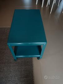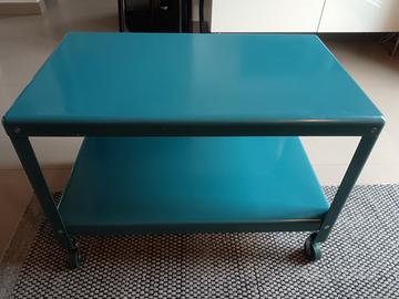 Tavolino da caffè Ikea PS2012 blu turchese con rotelle. Funzionale e pratico. Piccoli segni di usura e alcuni graffi. Misure altezza 48 lunghezza 70 larghezza 41 Ritiro Roma
