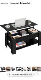 Tavolino da caffè Yaheetech nero, Acquistato su amazon 20 giorni fa. Montato a regola d'arte (circa due ore di lavoro). Perfettamente funzionante. Il nero non si adatta come sperato al resto dell'arredamento della stanza. Misure precise in foto. Acquistato 80 euro, lo rivendo 60 considerando le 2 ore di lavoro per montarlo (il meccanismo di sollevamento con le cerniere ha una cinquantina di viti da avvitare con una certa difficoltà). ovviamente allego fattura di acquisto (potrei ancora rimandarlo come reso, ma dovrei smontarlo). No perditempo. per ovvi motivi non spedisco.