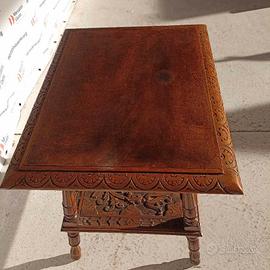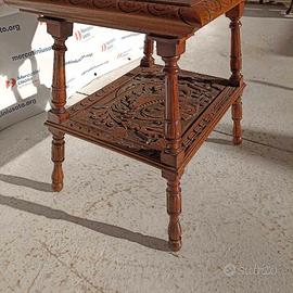 Tavolino da caff in stile Etnico. Struttura in legno intagliato con disegni