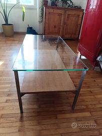 Tavolino da caffè vintage in vetro e metallo A 45cm L 100 cm P 51 cm