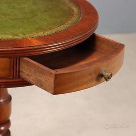 Tavolino da centro in mogano. Piano tondo girevole, con inserto in pelle verde, coppia di cassettini contrapposti nella fascia sotto piano, gamba centrale tornita poggiante su tre piedi a sciabola culminanti con scarpette in lamierino ottonato. Italia, XX Secolo. Codice: ANTATV0308564 Condizione prodotto: Prodotto che a causa dell'et e dell'usura richiede interventi di restauro e ripresa della lucidatura. Cerchiamo di presentare lo stato reale del mobile nel modo pi completo possibile con le foto. Qualora alcuni particolari non risultassero chiari dalle foto, fa fede quanto riportato nella descrizione. Misure: Largh.:50.00 cm, Alt.:62.50 cm, Prof.:0.00 cm DISPONIBILE RITIRO, PREVIO SALDO, SU APPUNTAMENTO PRESSO LA SEDE DI MILANO! Venditore: Barbara (dal Luned al Venerd : dalle 9:00 alle 19:00, Sabato: dalle 10.00 alle 19.00) Per informazioni dettagliate contattateci su Whatsapp. Disponibili ad inviare video o foto integrative su Whatsapp. Di Mano in Mano, Negozio dell'usato di Milano, viale Espinasse, 99 (Zona Certosa). Oltre 1000 mq di esposizione, tra usato, vintage, modernariato, antiquariato, arte e libri. Esplora il nostro portale mercatiniusato.org per scoprire centinaia di arredi usati.