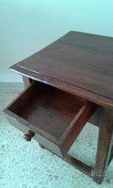 Tavolino da ciabattino del 1900 in castagno massello, con un cassetto. Completamente restaurato. Spese di trasporto a carico dell'acquirente.