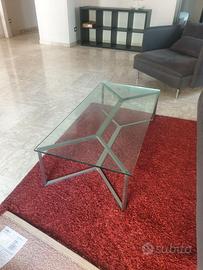 Tavolino Gallotti e Radice con piano in cristallo trasparente e struttura in acciaio inox in perfette condizioni. Ritiro a carico dell'acquirente. Misure 60x120 h.33