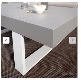 Tavolino da giardino rettangolare NATERIAL della serie Las Vegas con la struttura in alluminio verniciato bianco e il piano in alluminio verniciato in colore grigio chiaro. Dimensioni: 132.5 x 73.5 x 42 cm (larghezza x profondità x altezza)