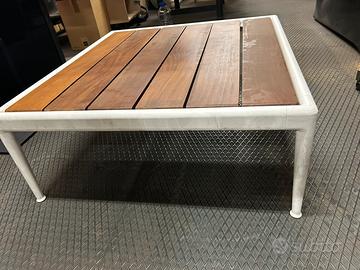 Tavolino da esterno 100x100 h40 Finitura bianco goffrato, piano in iroco. Le assi sono mobili. Trattativa in privato