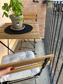 Vendo tavolino in legno con 2 sedie richiudibili comprese di cuscino color tortora chiaro. Anche il tavolo è chiudibile, ottimo per esterno. Comprato a novembre del 2024 e usato pochissimo, solo qualche volta in estate, vendo per cambio casa.
