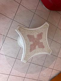 Tavolino stile barocco da fumo in pietra bianca antichizzata con disegno rozso sul piano. Alta cm 45, larga cm 58 senza vetro. Il vetro di spessore di 1 cm ha un dismetro di cm 80, privo di sfrigi e speccarure
