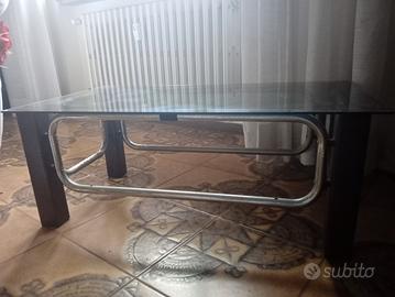 tavolino da fumo con piano in vetro base un po' sfogliata