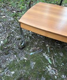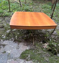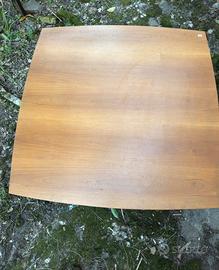 Descrizione Vendesi elegante tavolino da caffè (coffee table) di modernariato, risalente agli anni '60/70. Un pezzo caratterizzato da un raffinato contrasto tra materiali caldi e freddi, perfetto per salotti in stile vintage, scandinavo o contemporaneo. Caratteristiche principali: Piano: Forma quadrata "a botte" (lati leggermente convessi) impiallacciato in pregiato legno di ciliegio con splendida venatura a vista. Struttura: Gambe in metallo satinato dalla linea a "sciabola" estremamente sottile e slanciata, che donano al mobile un senso di estrema leggerezza. Dimensioni: Lato 95 \times 95 cm | Altezza 42 cm. Stato di conservazione: Il mobile è in buone condizioni vintage originali. Presenta lievi e normali segni del tempo sulla superficie del legno che ne testimoniano l'autenticità (tacilmente ripristinabili con una leggera ceratura). Struttura solida e stabile. Ideale per: Arredamento d'interni, amanti del design italiano, collezionisti di modernariato o per chi cerca un pezzo unico e di carattere per il proprio living.