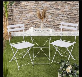 Vendo tavolino in ferro con 2 sedie in ferro, pieghevole sia le sedie che il tavolo .Ancora nella sua scatola originale, ê nuovissimo vero affare non perditempo.