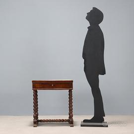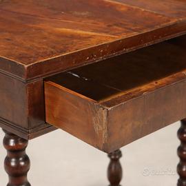 Tavolino da lavoro in noce. Cassetto nella fascia sotto piano, gambe tornite a