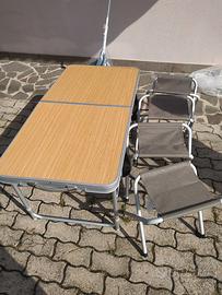 tavolino da picnic pieghevole e regolabile in altezza con 4 sedie in alluminio . 40 euro